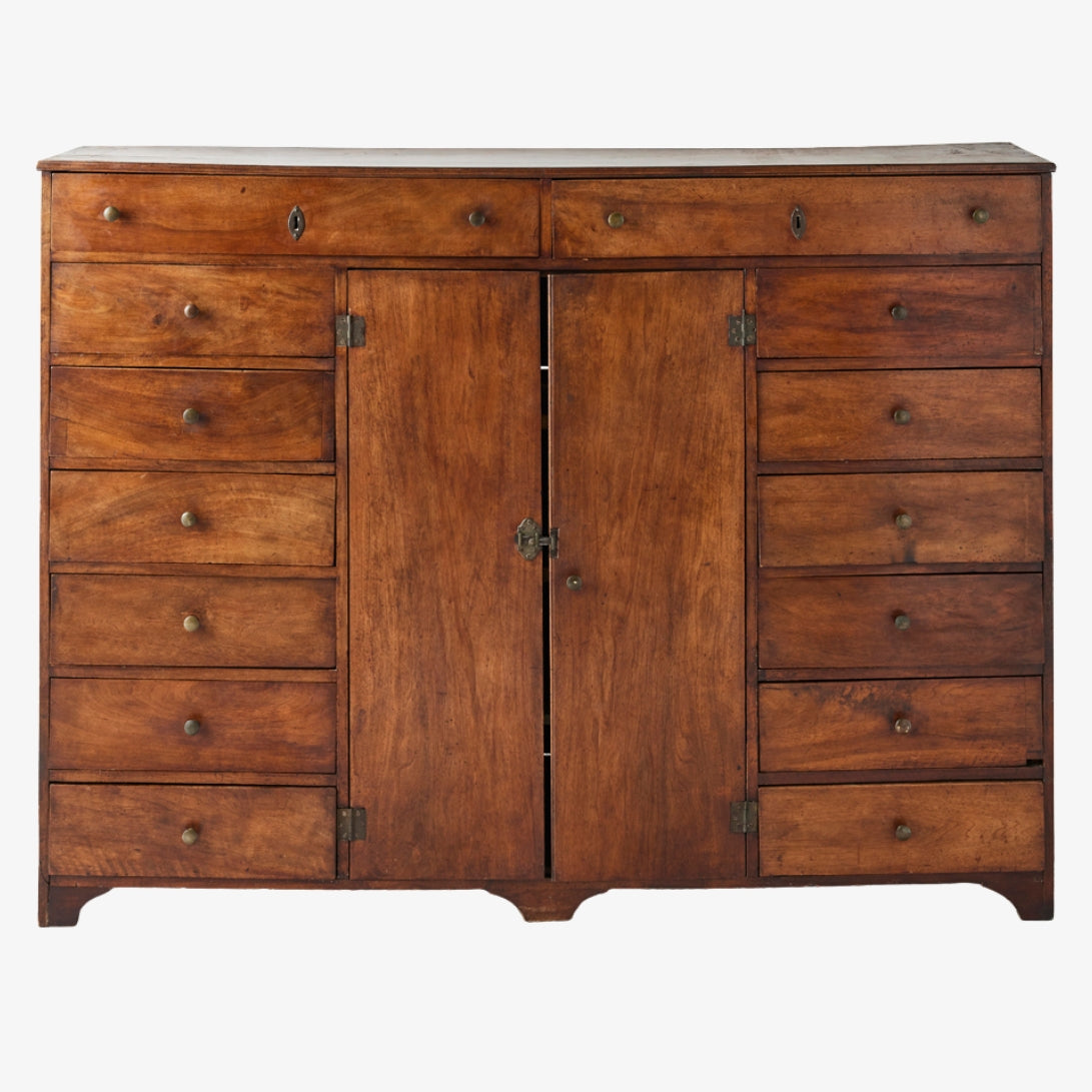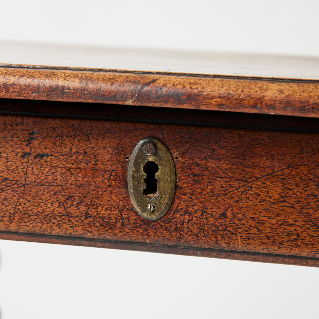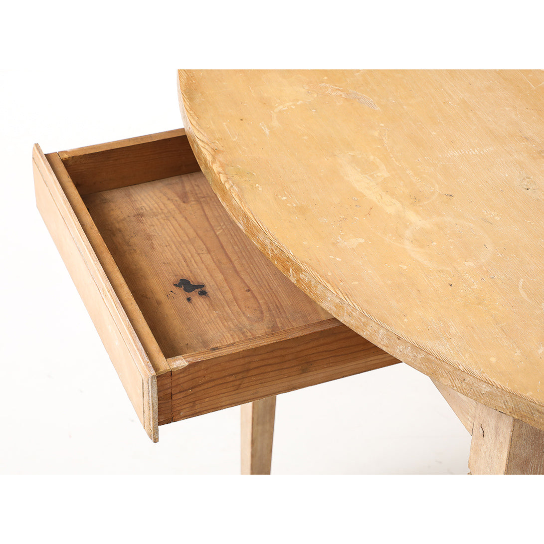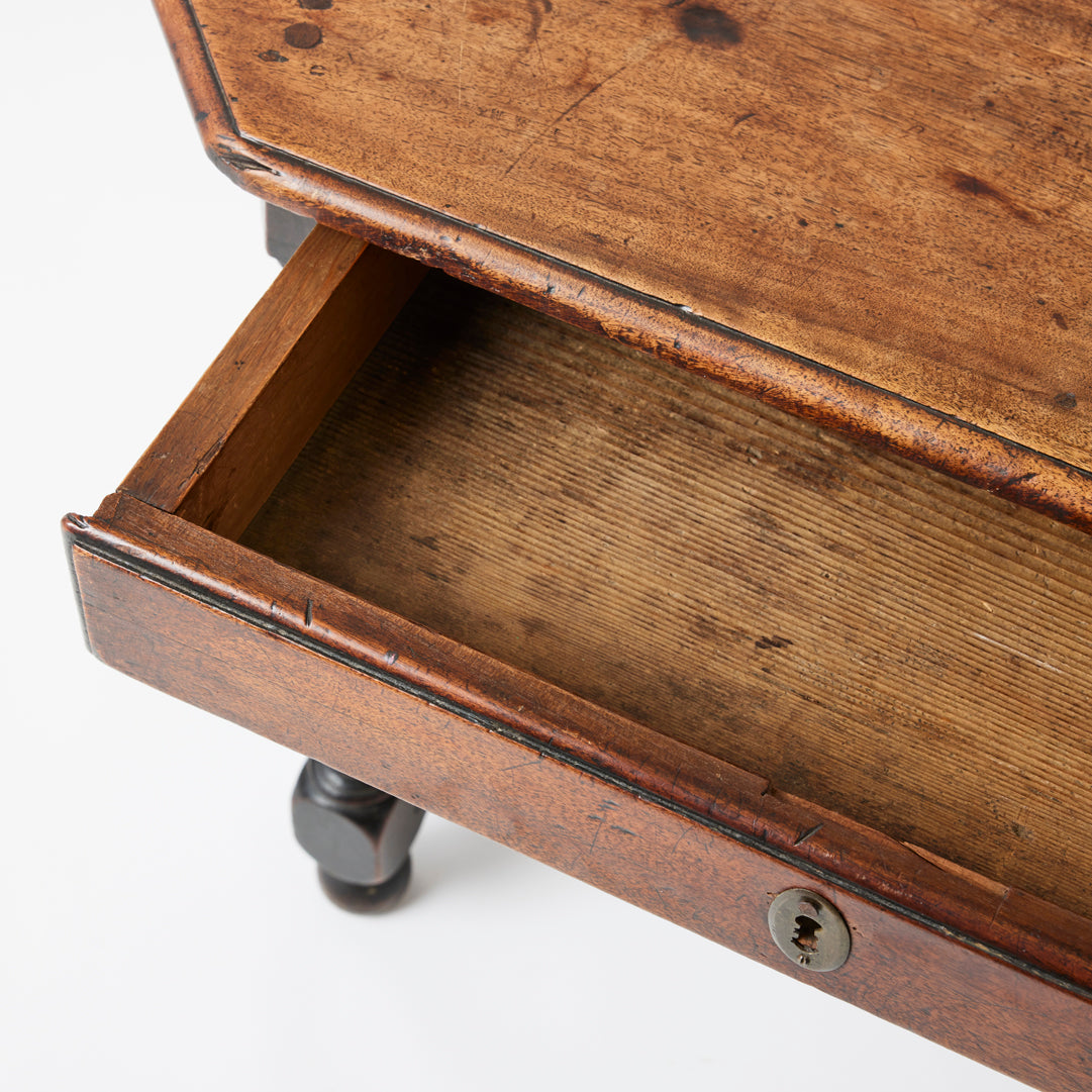 - This antique piece features a roomy and easy to open drawer, the interior of which was lacquered red in one of its past lives.