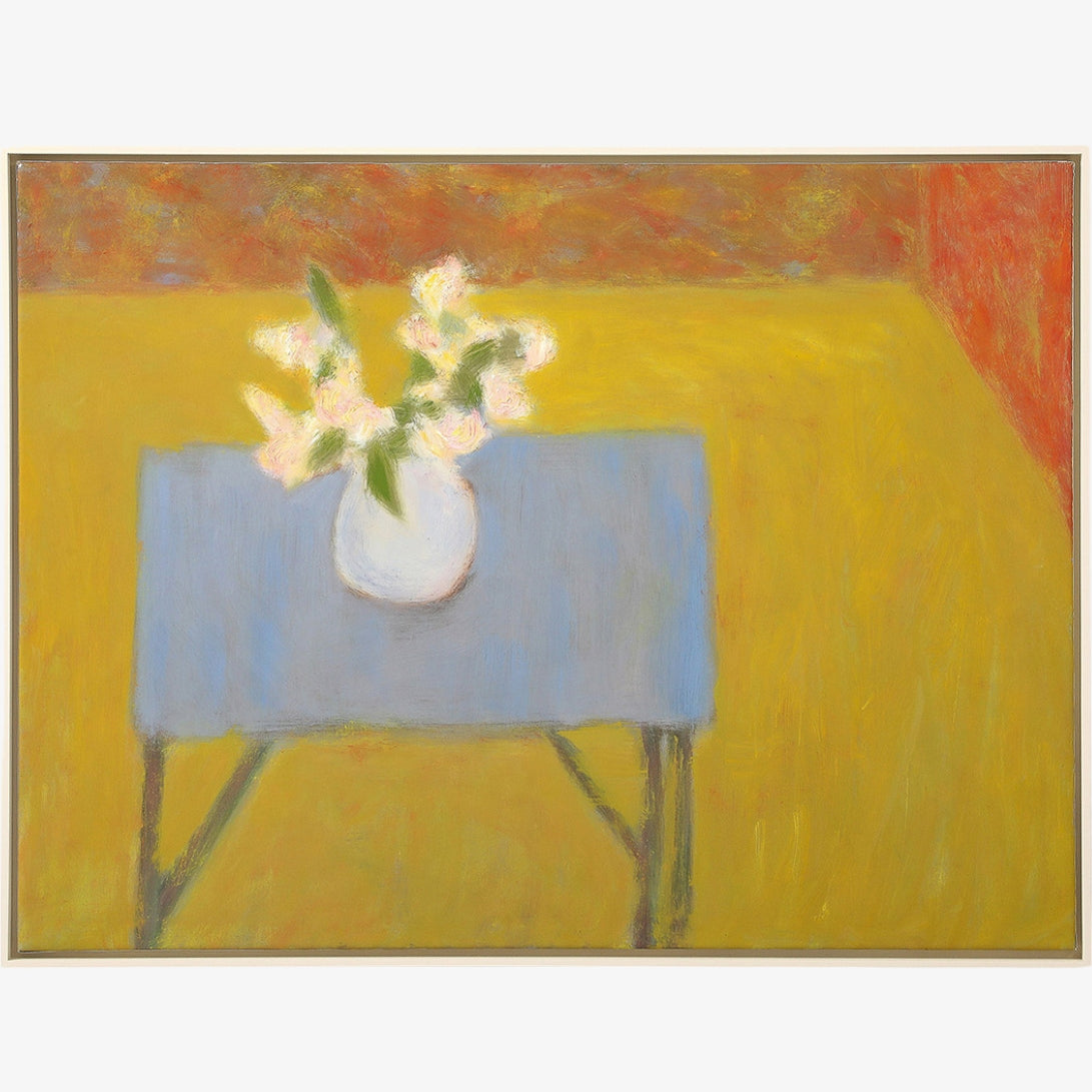 - Oil on canvas, newly framed in painted off-white. Certificate of authenticity provided.