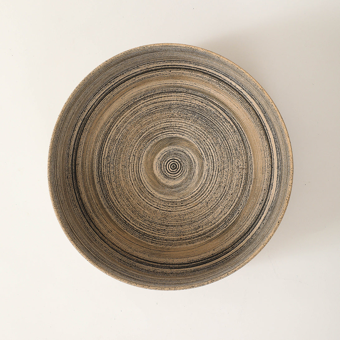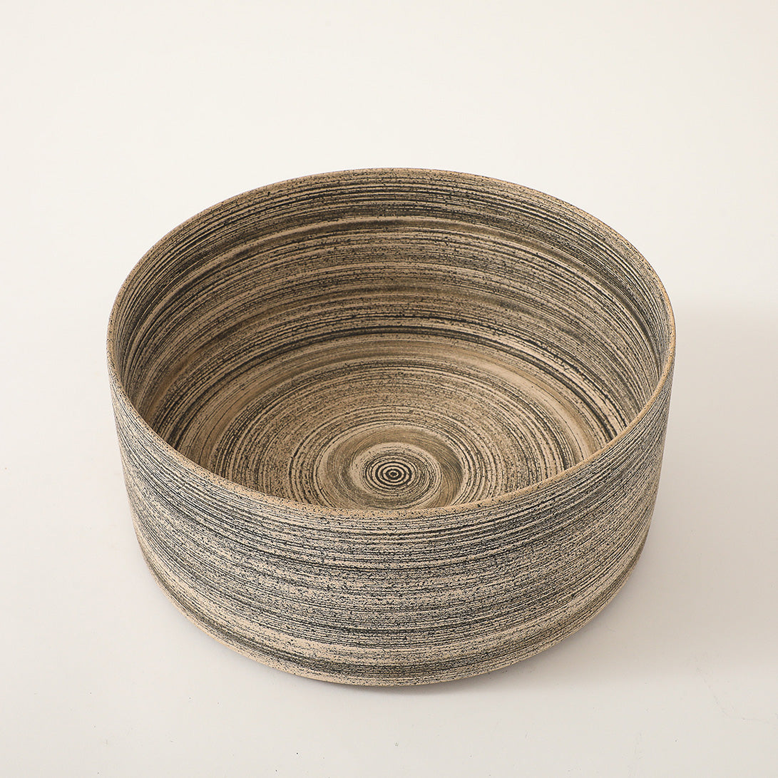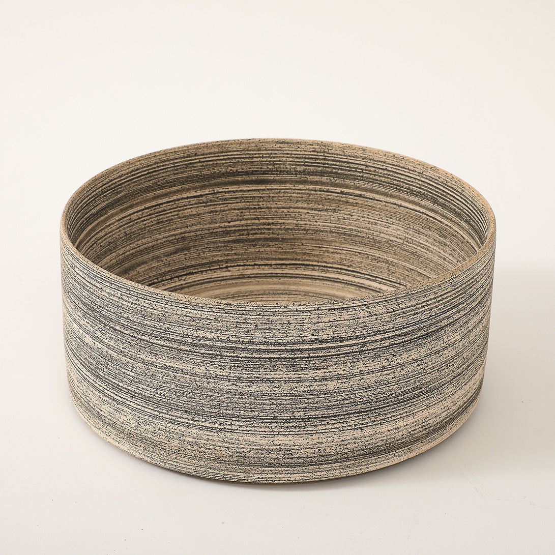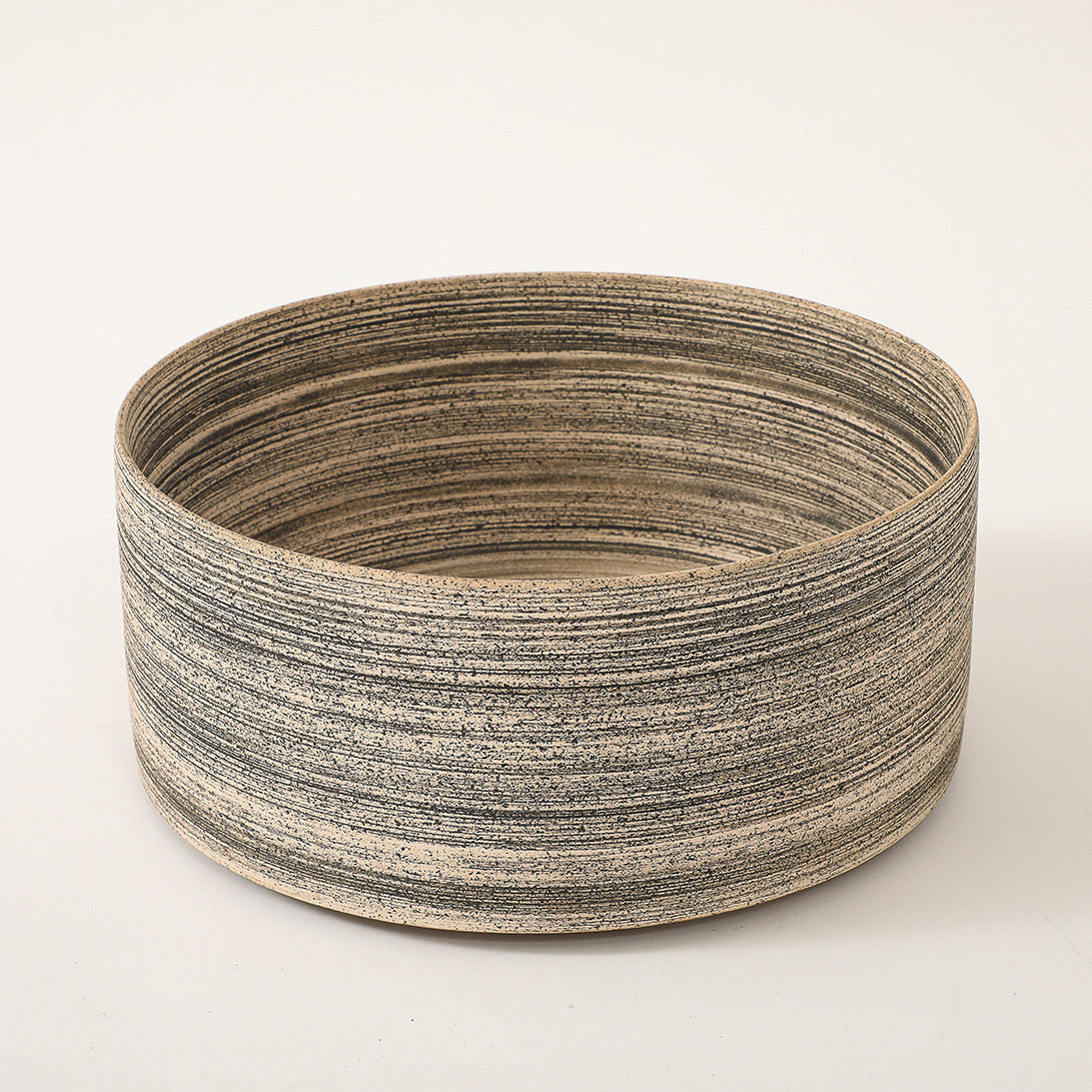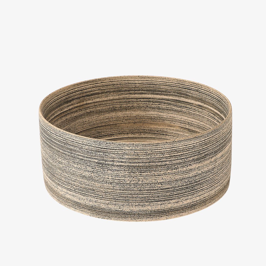 - A pure, minimal form with an intriguing texture, this ceramic bowl doubles as sculpture. We love its palette of off-white and charcoal.
