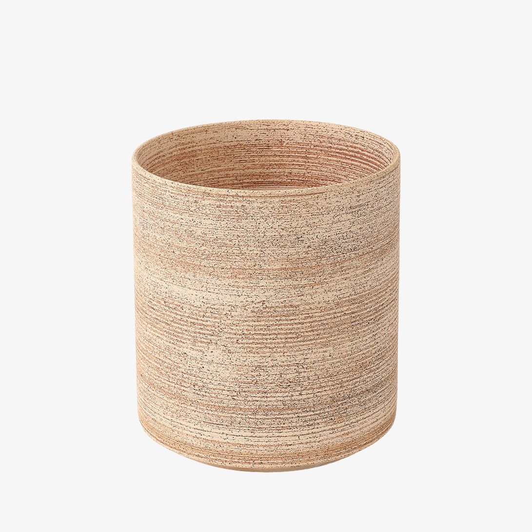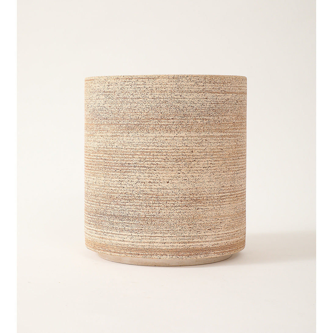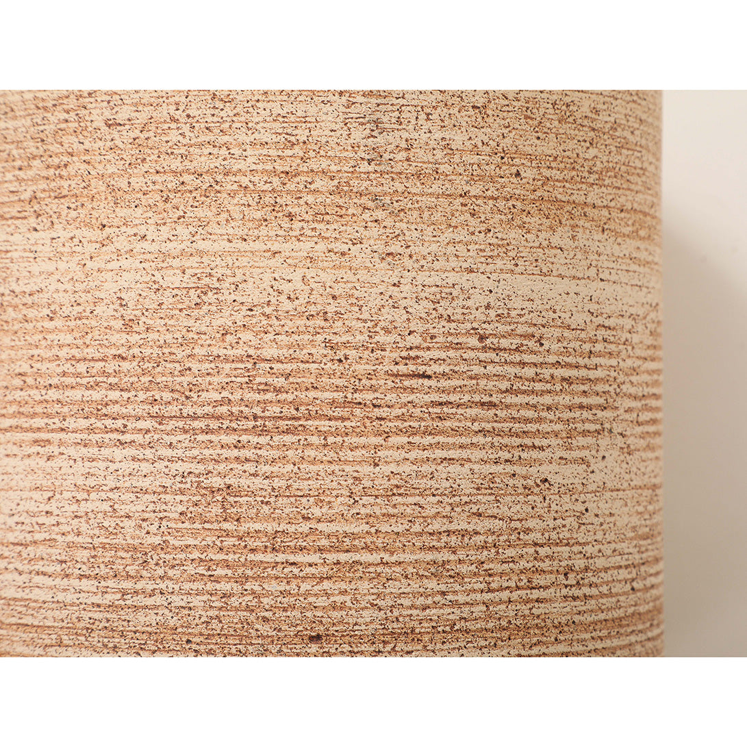 - A pure, minimal form with an intriguing texture, this ceramic vessel doubles as sculpture. We love its palette of ivory and sand.