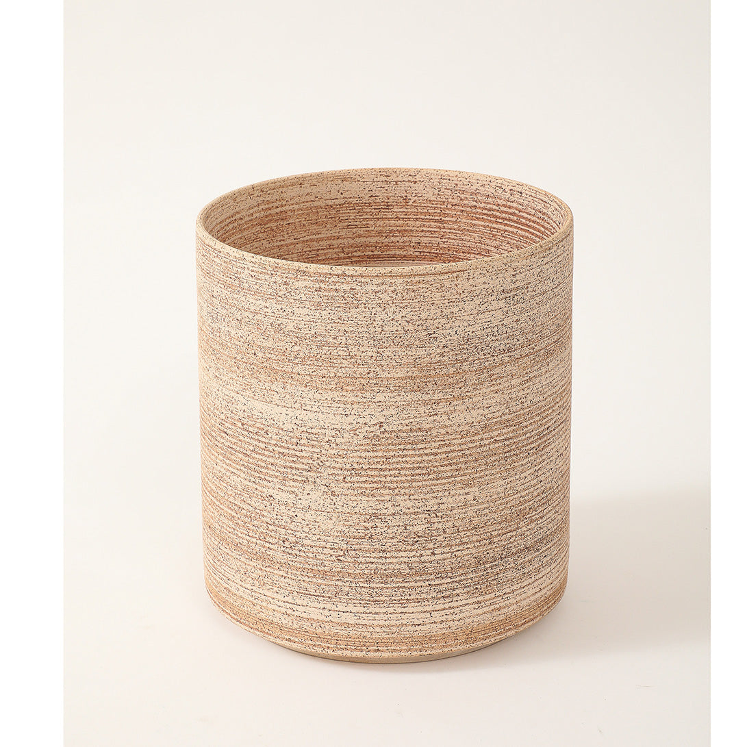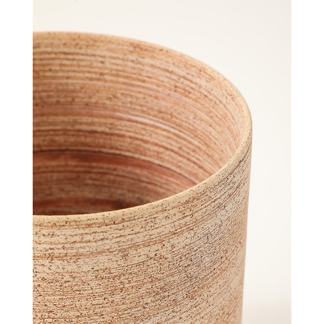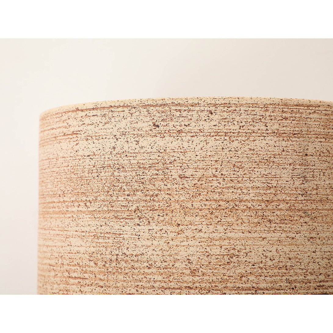 - A pure, minimal form with an intriguing texture, this ceramic vessel doubles as sculpture. We love its palette of ivory and sand.
