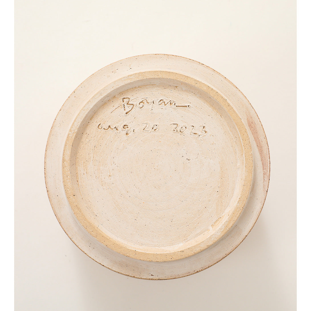 - Experimental surface texture is the defining characteristic of Moskov's work. This piece has a combed, timeworn surface that offers a compelling counterpoint to its simple form.