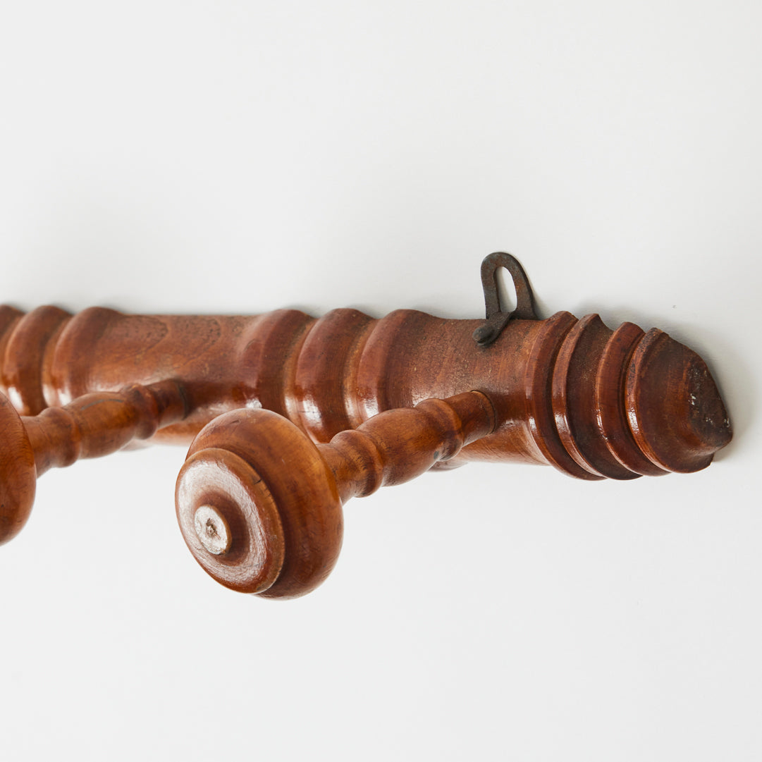 - Entirely authentic, this French piece dates to the late 19th century. An ideal catchall for hats, bags, and jackets, this rack features 4 pegs and 2 metal loops for easy hanging.