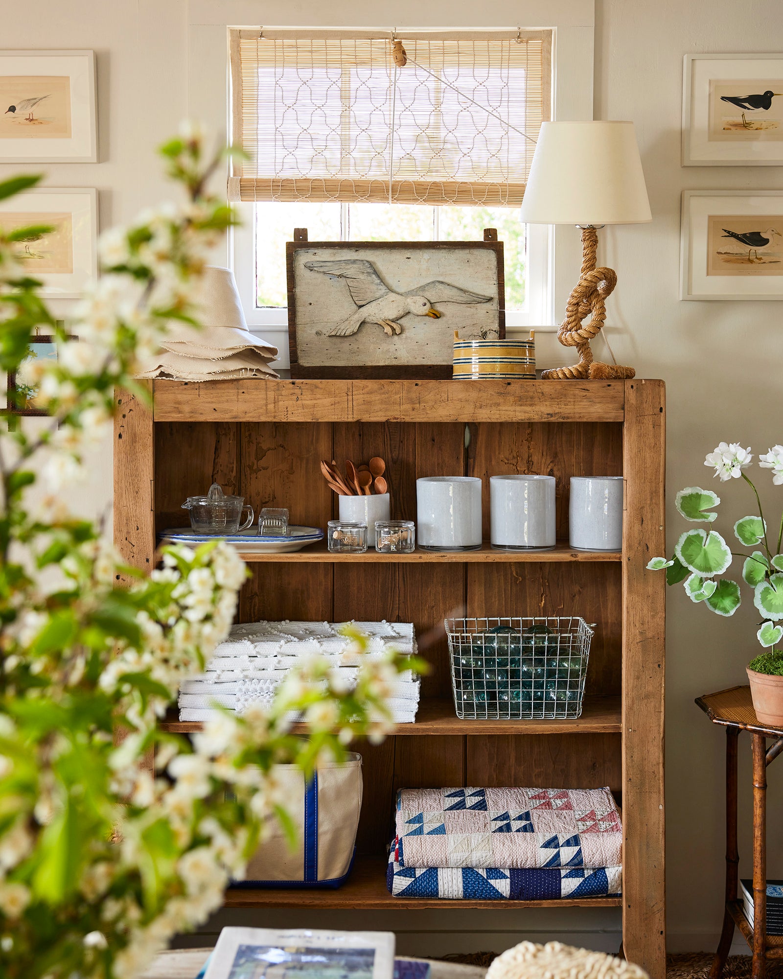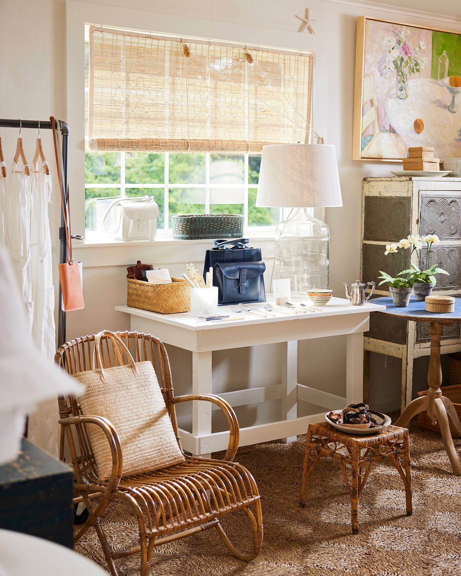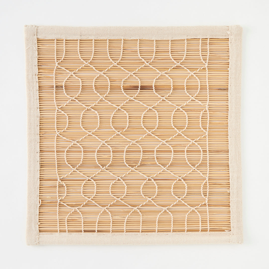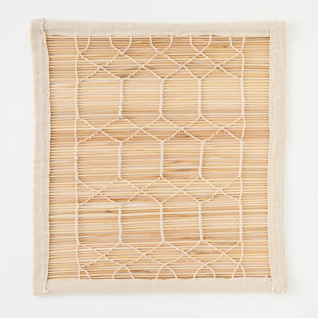 Long a favorite of ours, bamboo “chik” blinds have been used for centuries in India to shield interiors from blazing sunlight. These shades are made by hand by a highly skilled team of artisans in Delhi. Thick bamboo poles are shaved, split into fine strips, and then woven by hand into geometric designs. Each shade is then edged with woven tape and finished with three ties along its top edge for hanging, as well as a pulley mechanism and rope for raising and lowering the blind. The completed look is charming, warm, and timeless. Their intricate weave filters sunlight beautifully and casts dappled patterns onto floors and walls. Please note that these blinds do not offer privacy.