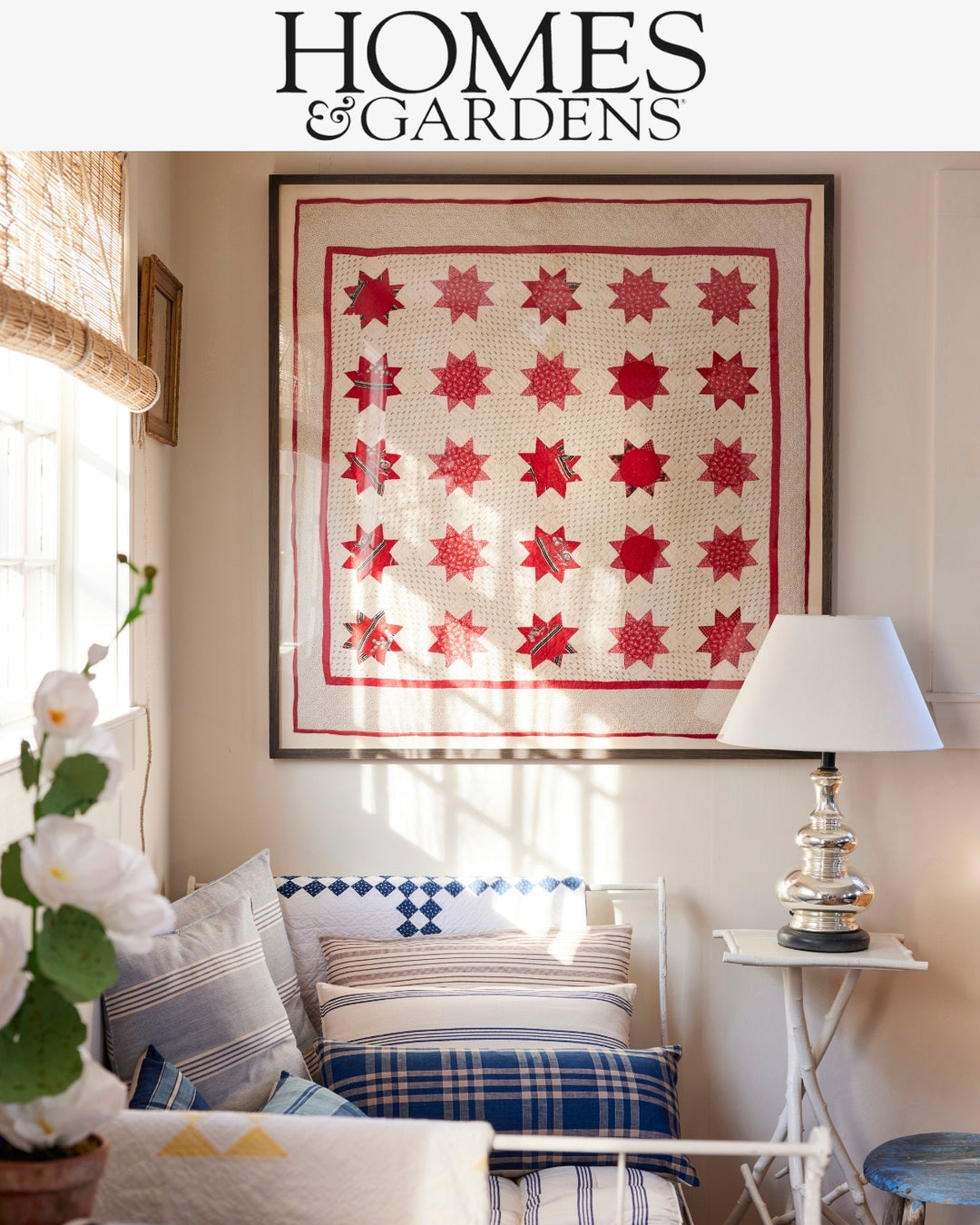 “Tori’s seasonal Block Island store and year-round New York gallery are rich with ideas for displaying quilts in lived-in spaces.”