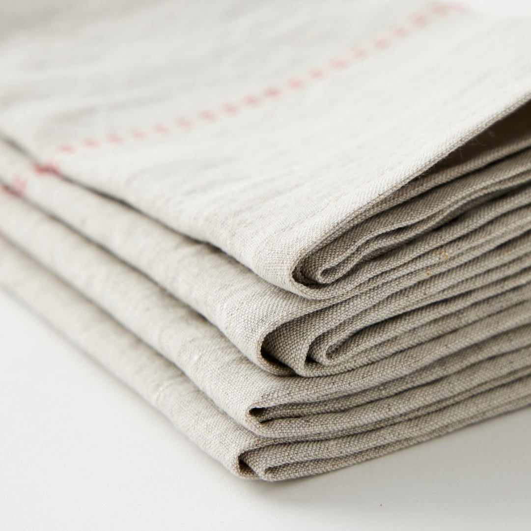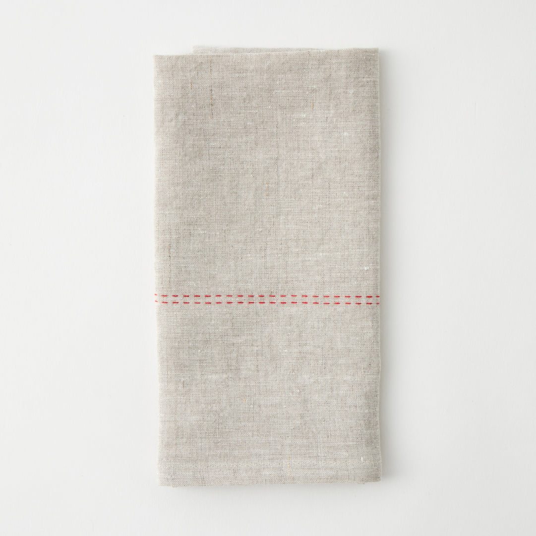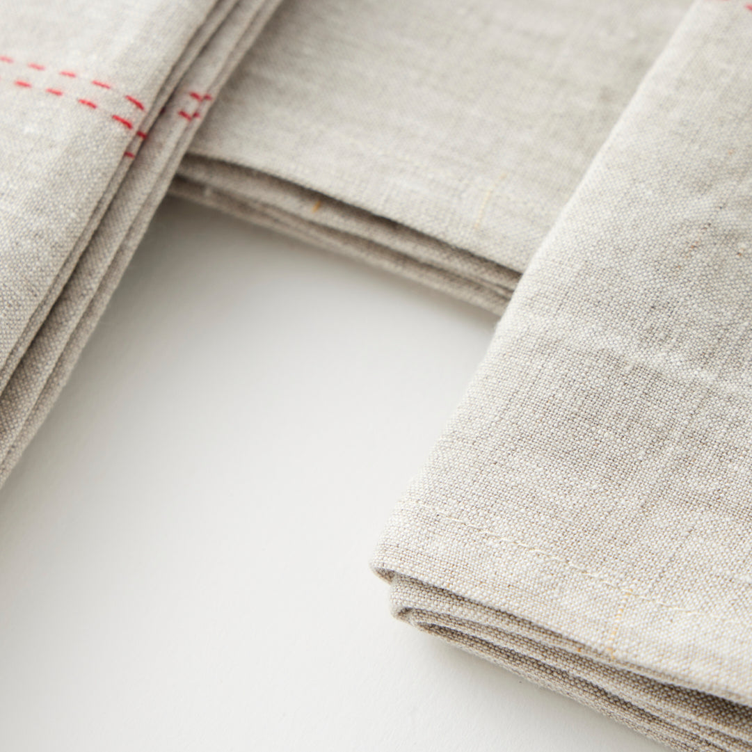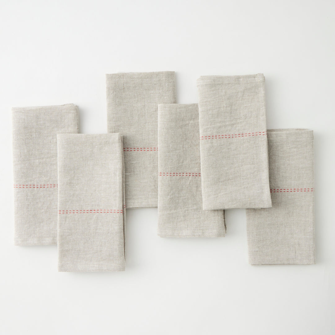 Rythmo Linen Napkins, Red Stitching, Set of 6
