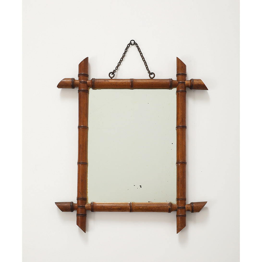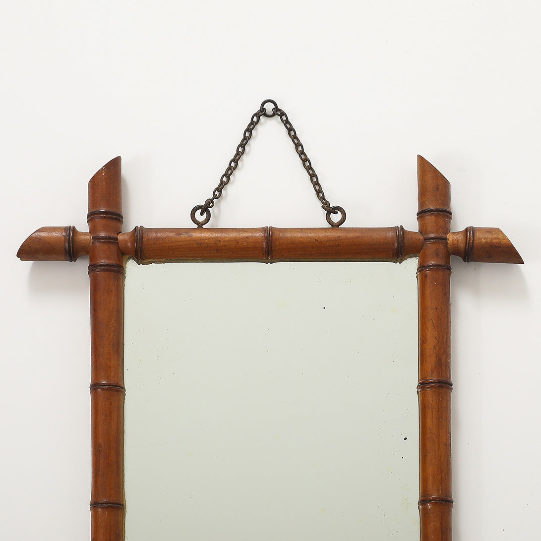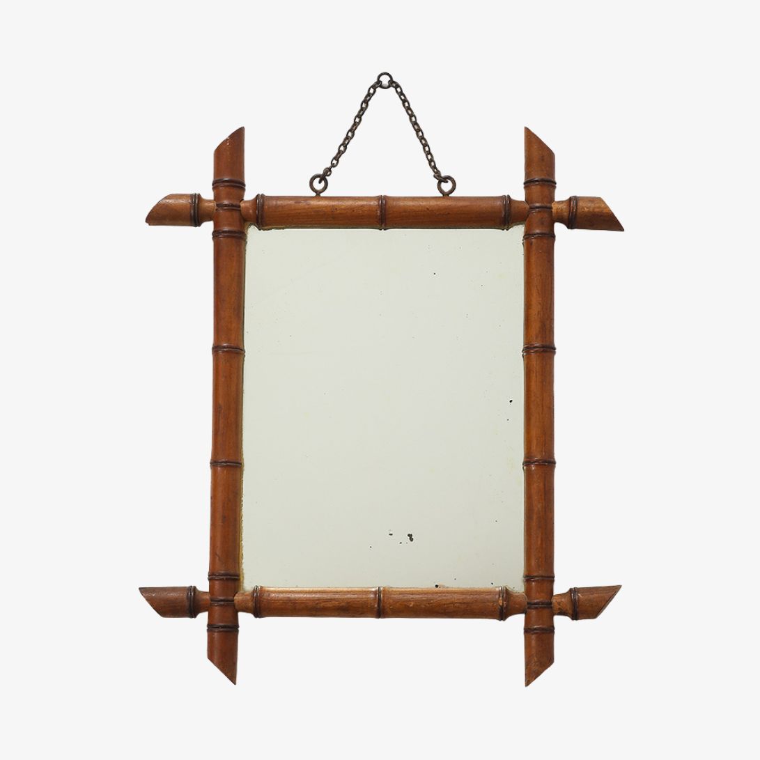 - A timeless style and form, this vintage French mirror features a beautiful rich finish, reeded faux bamboo details, and original glass.